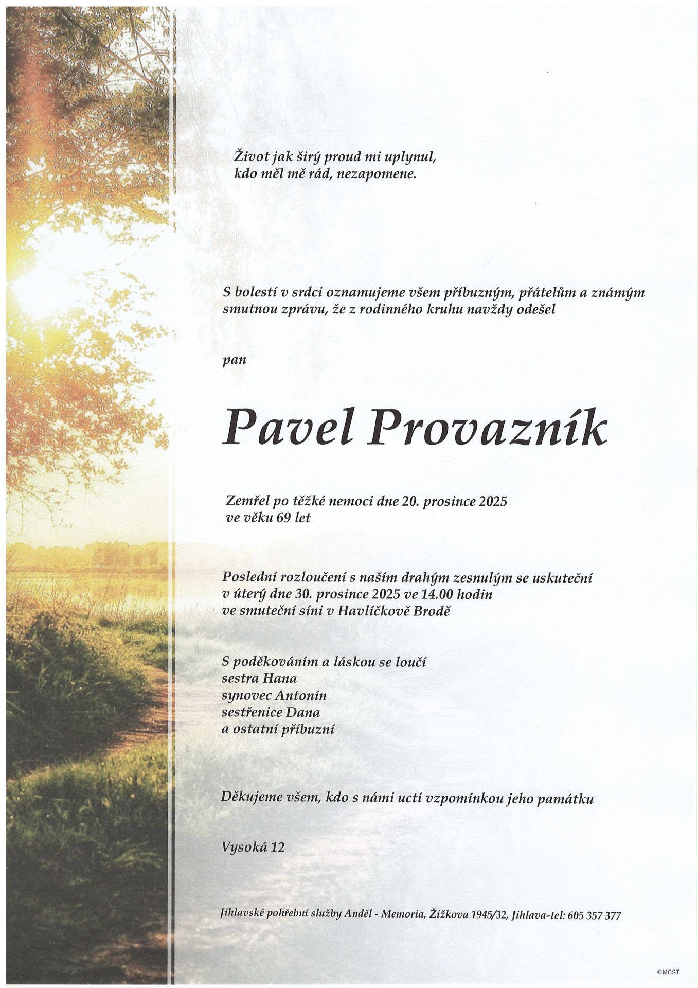 30. 12. 2025 - 14:00smuteční síň Havlíčkův Brod