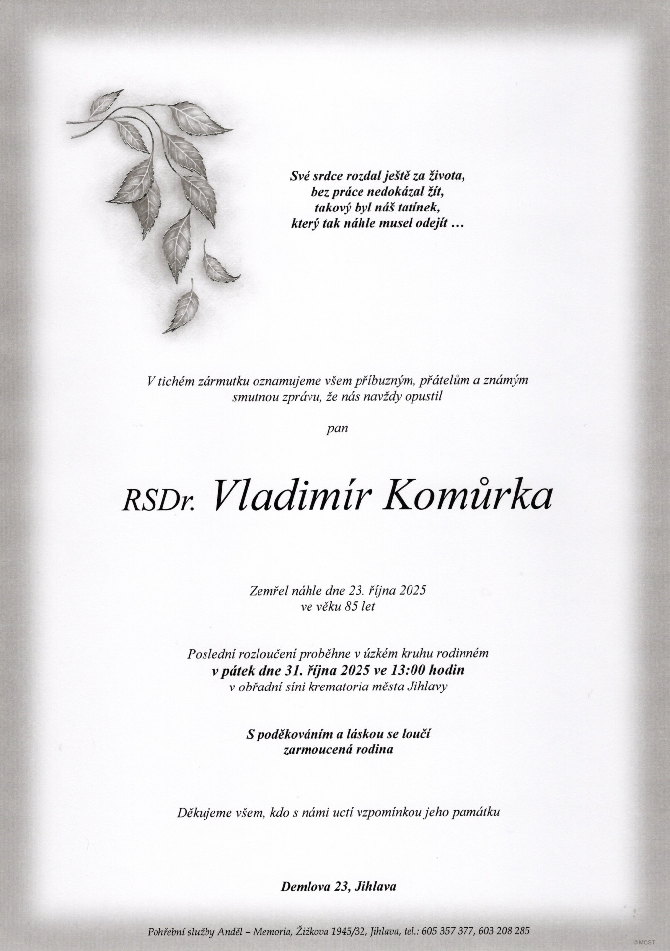 30. 10. 2025 - 13:00krematorium, Jihlava