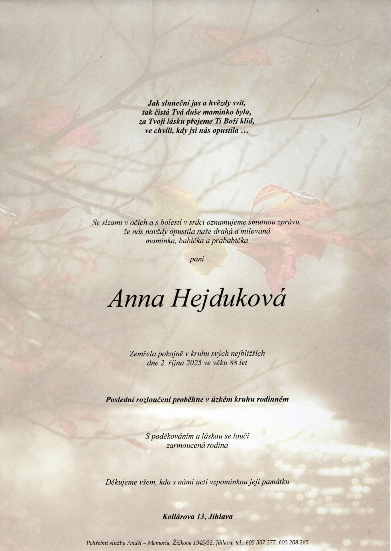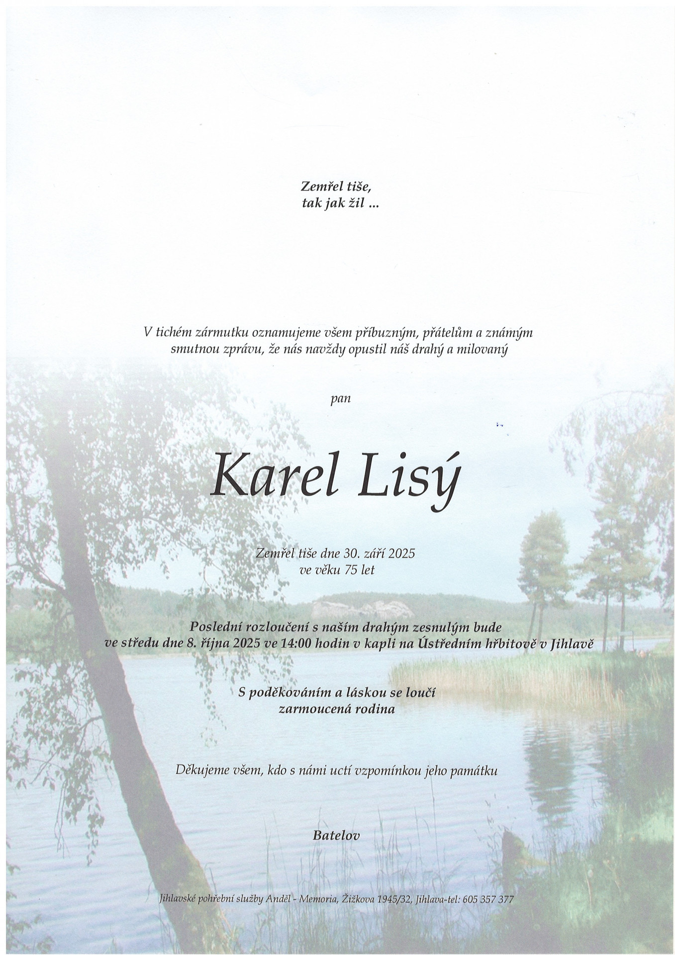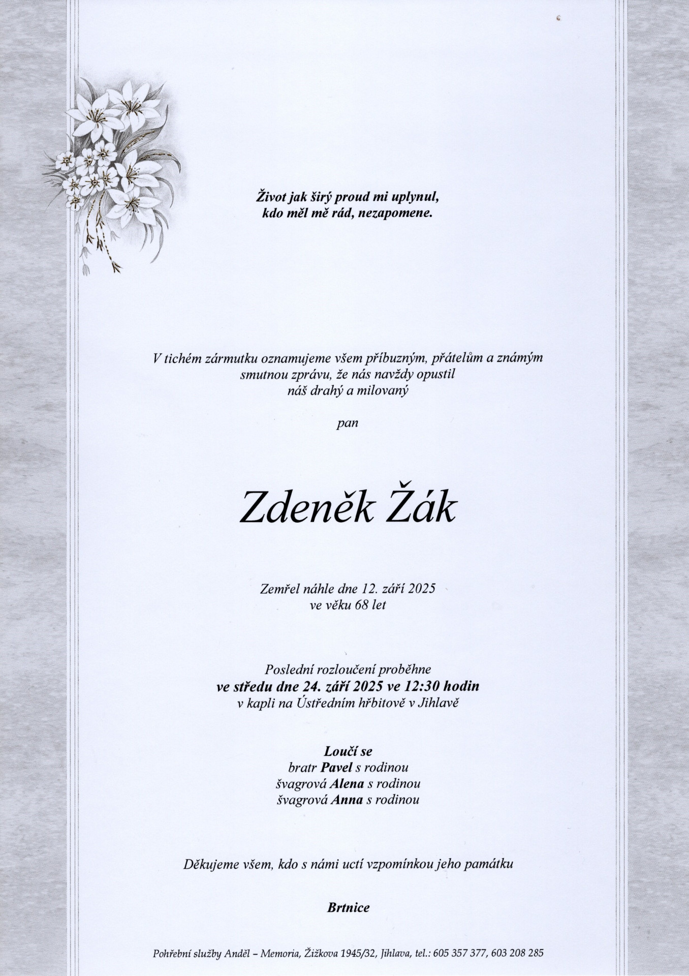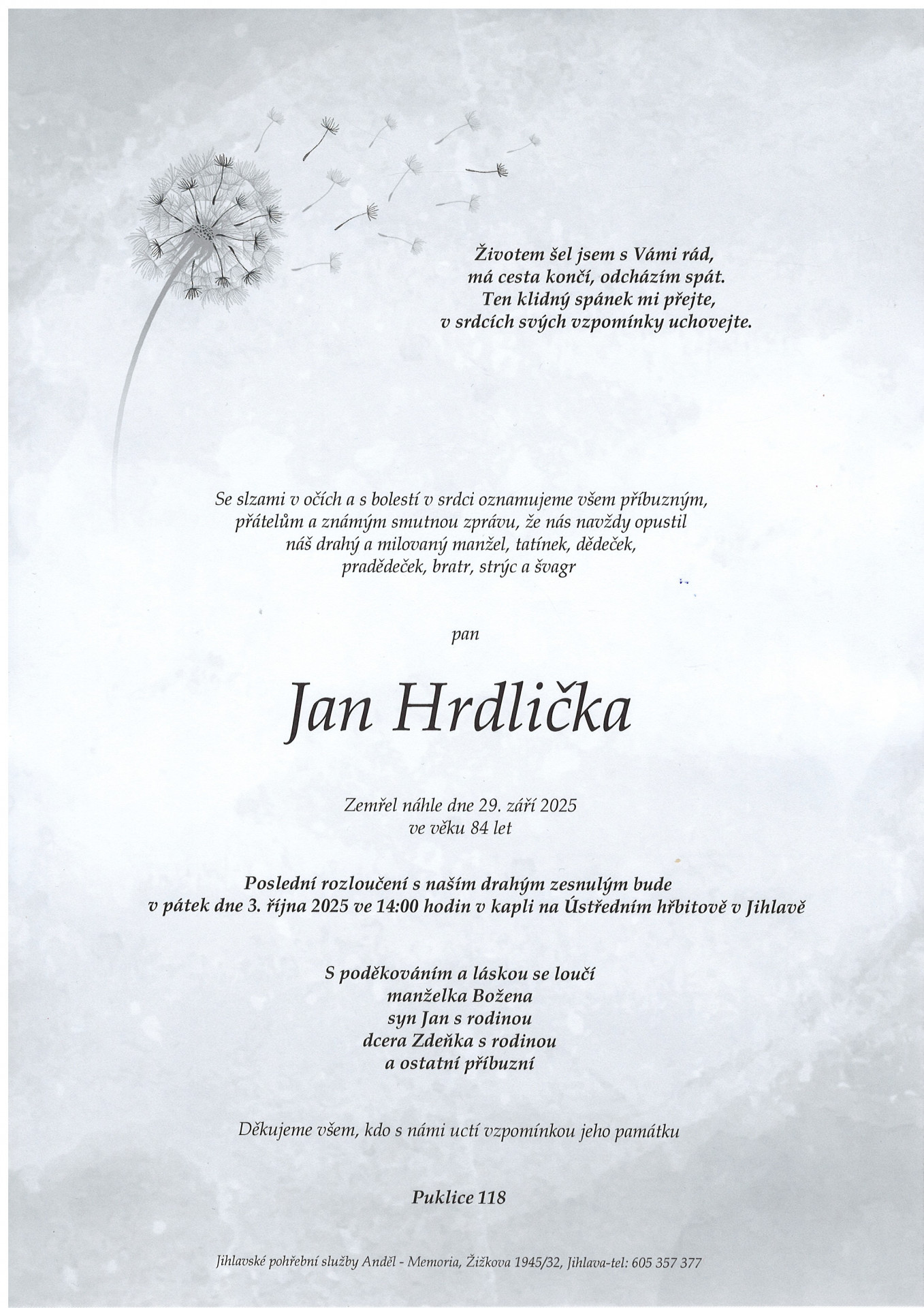 8. 9. 2025 - 11:00krematorium, Jihlava
