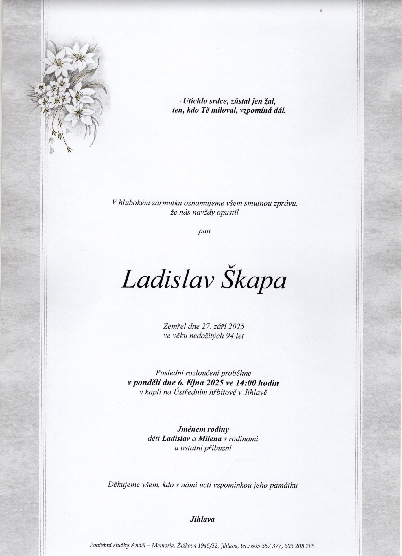 5. 8. 2025 - 11:00kaple Ústřední hřbitov, Jihlava