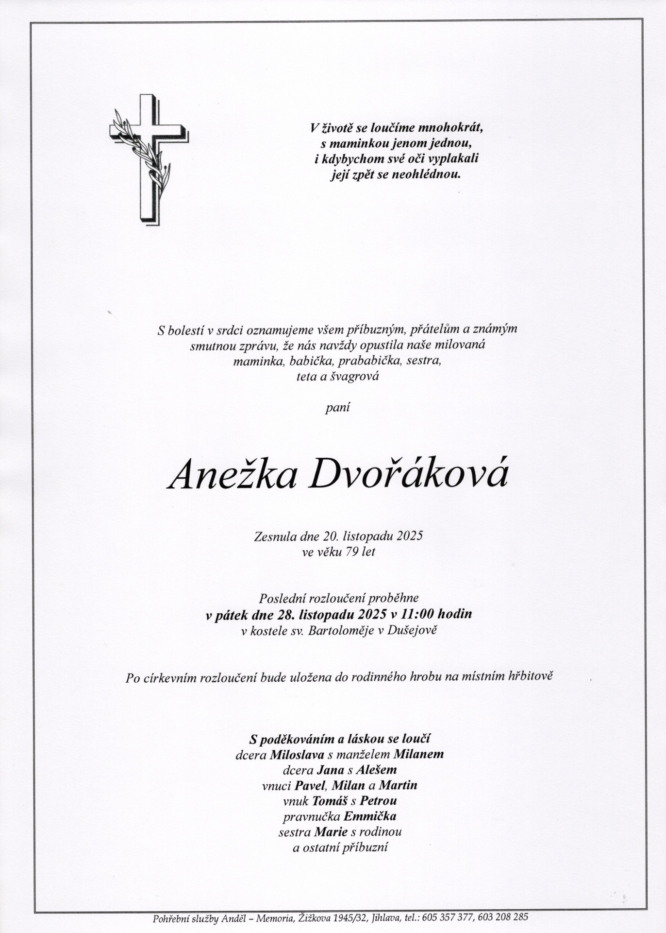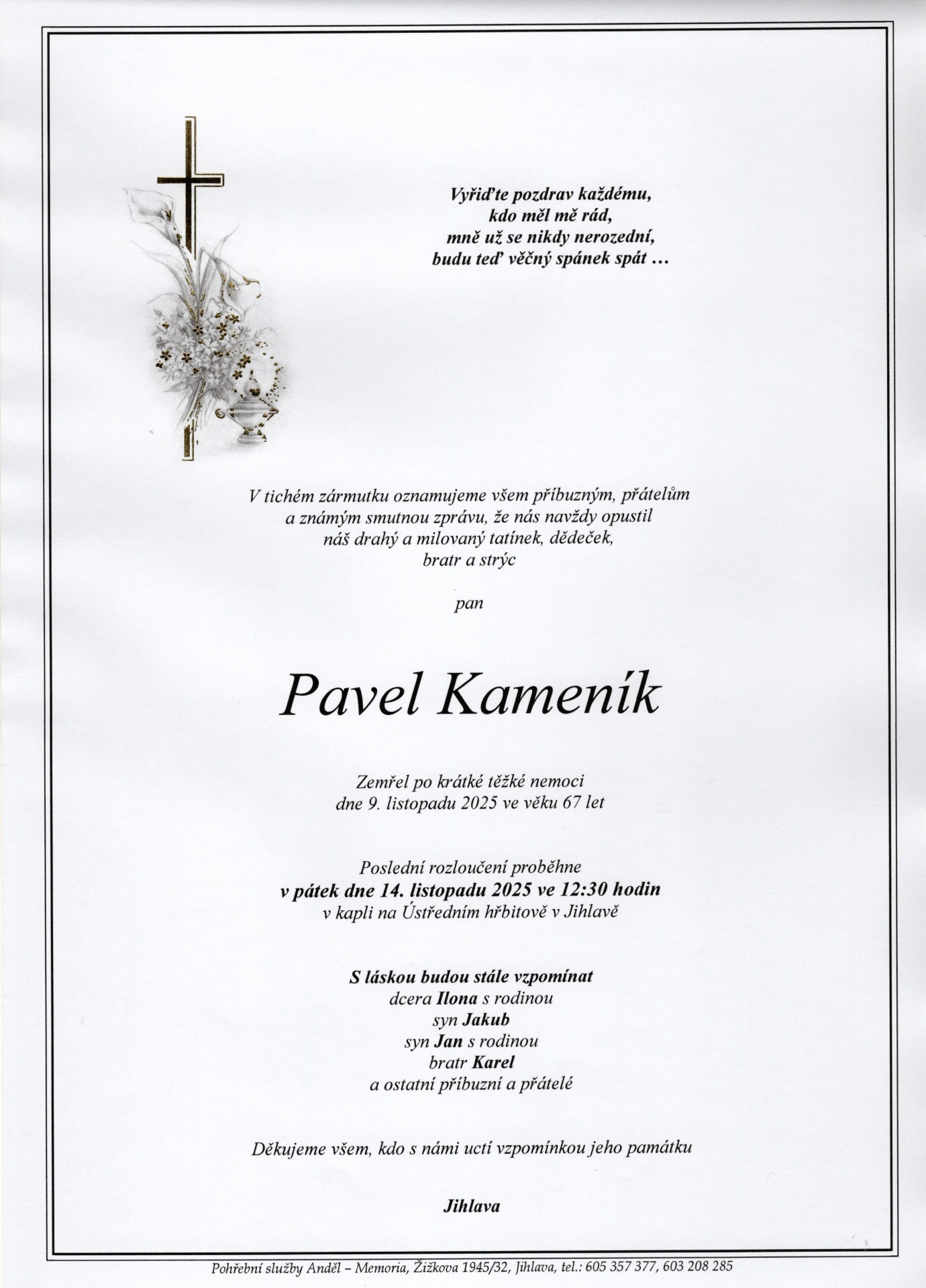 7. 11. 2025 - 11:00kaple na Ústředním hřbitově, Jihlava