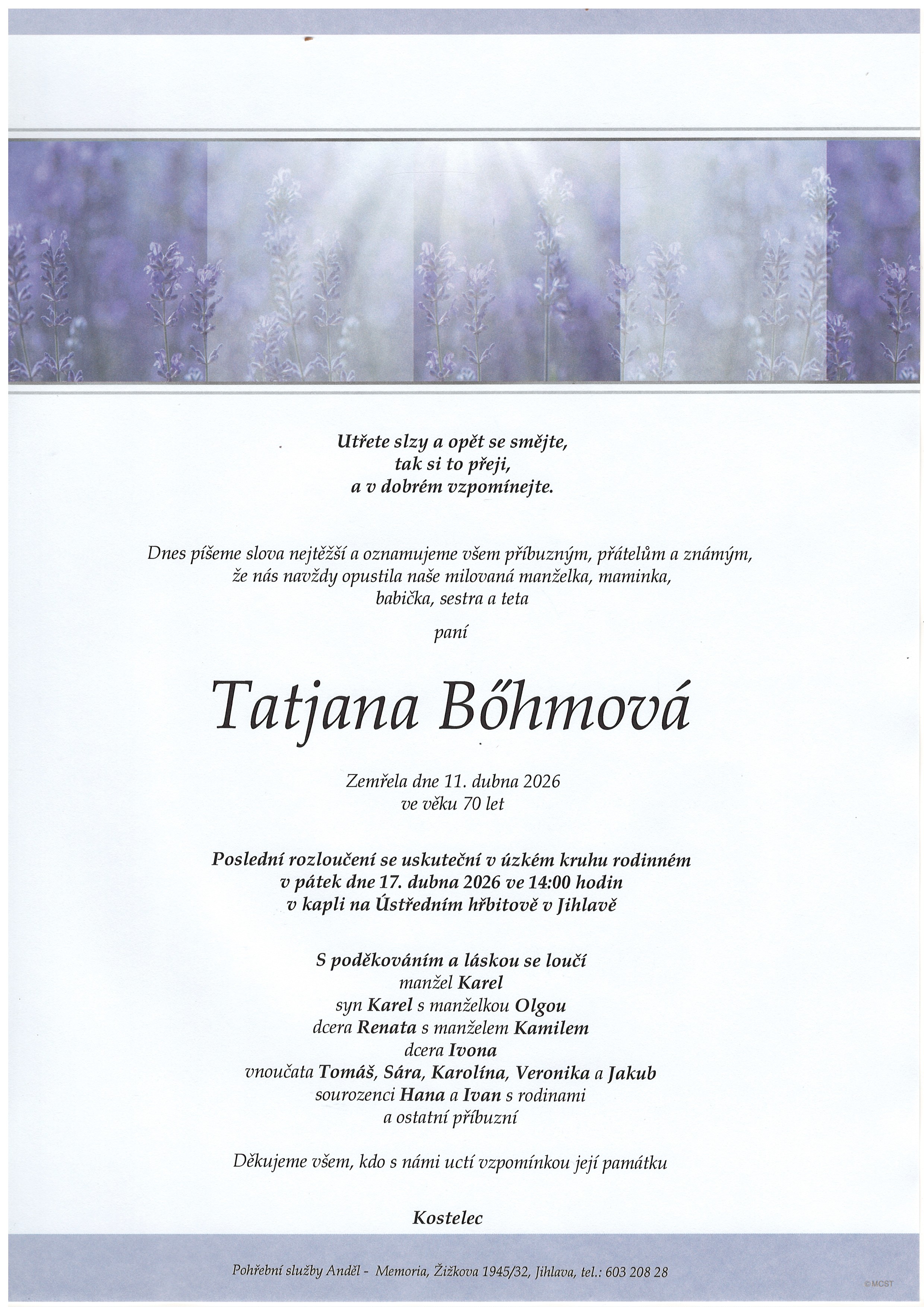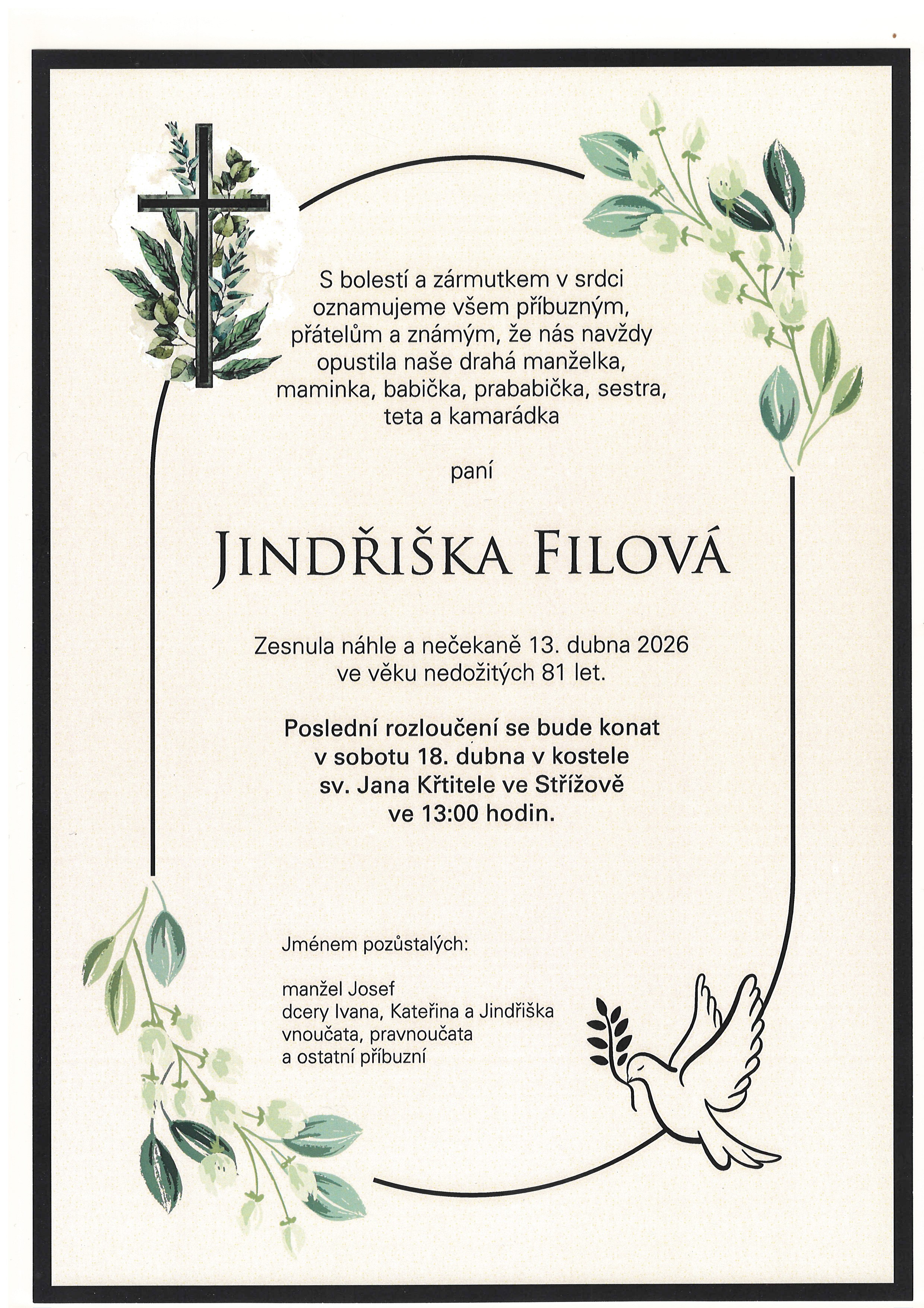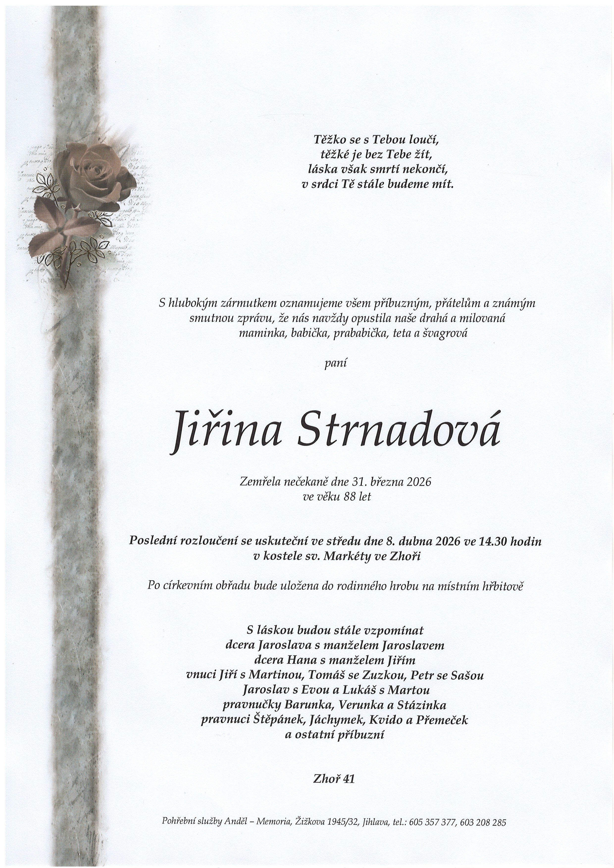 V případě rodinných rozloučení jsou podrobnosti skryty v souladu s přáním pozůstalých.