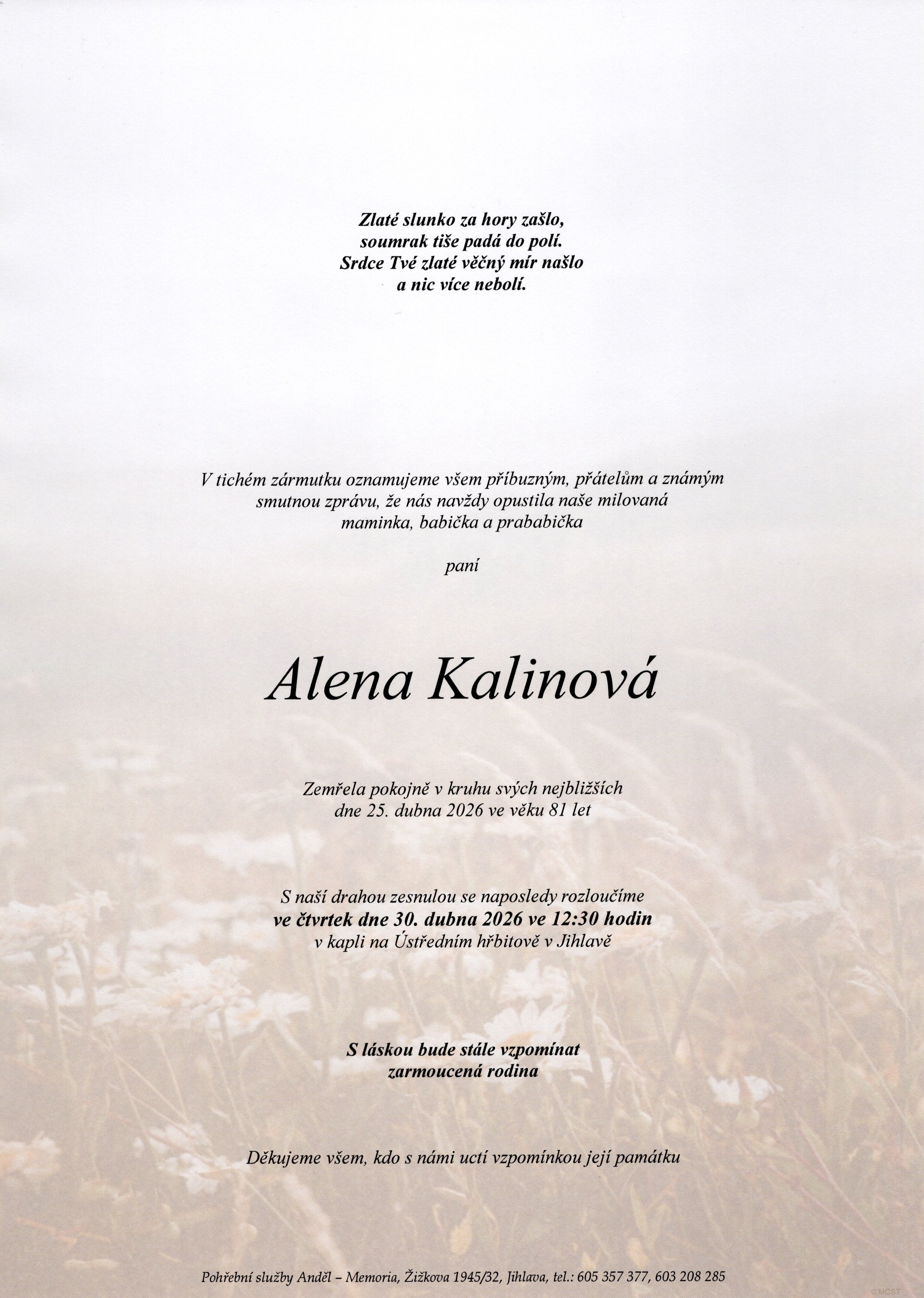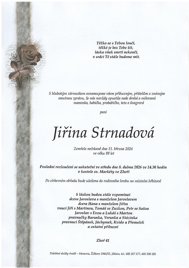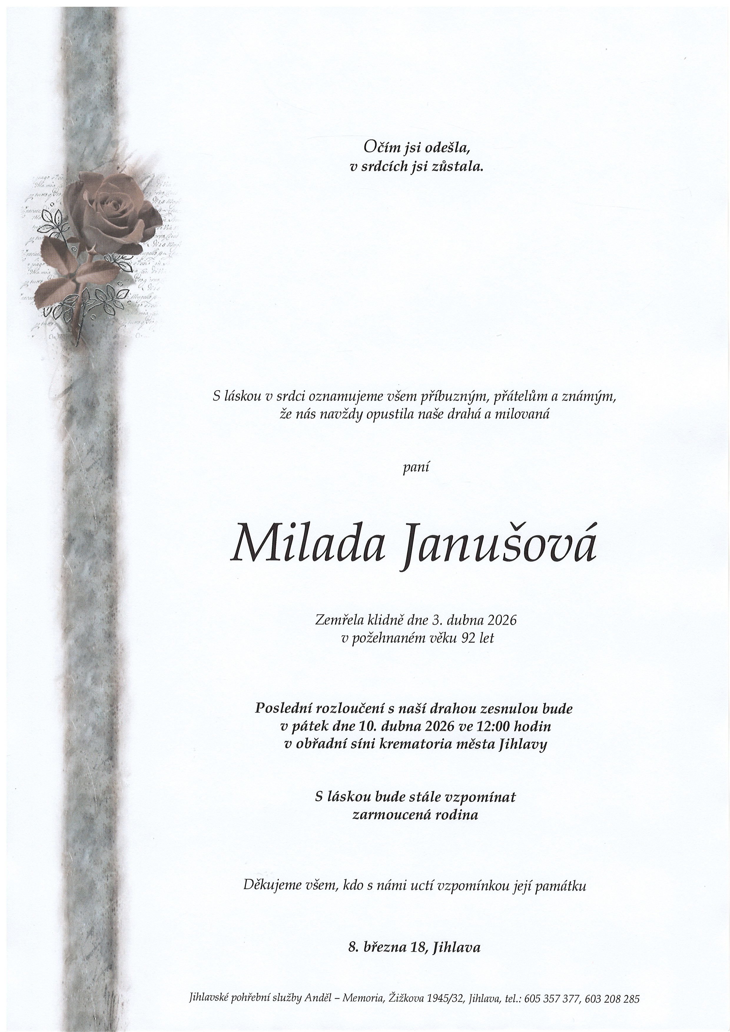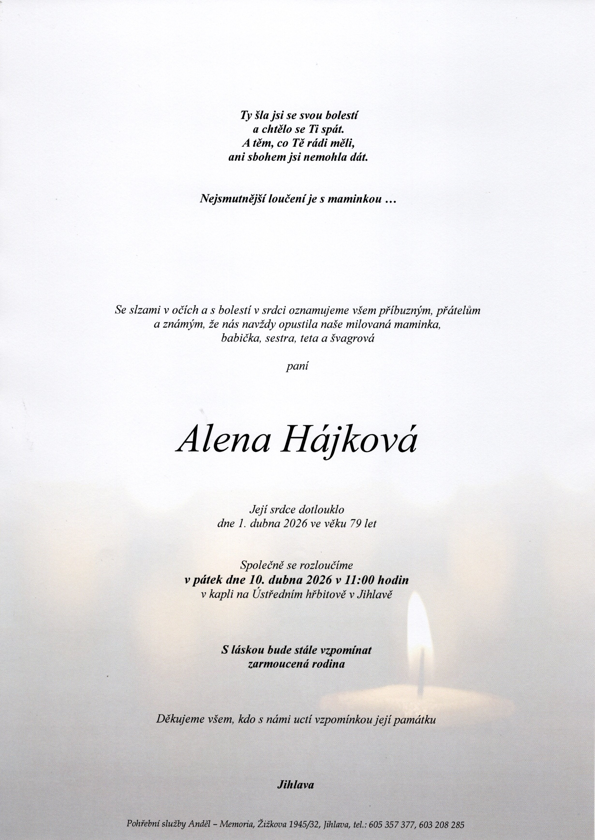 V případě rodinných rozloučení jsou podrobnosti skryty v souladu s přáním pozůstalých.